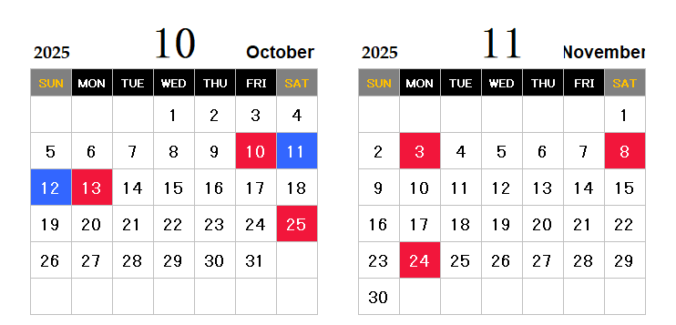 【 Our Business Calendar Information 】